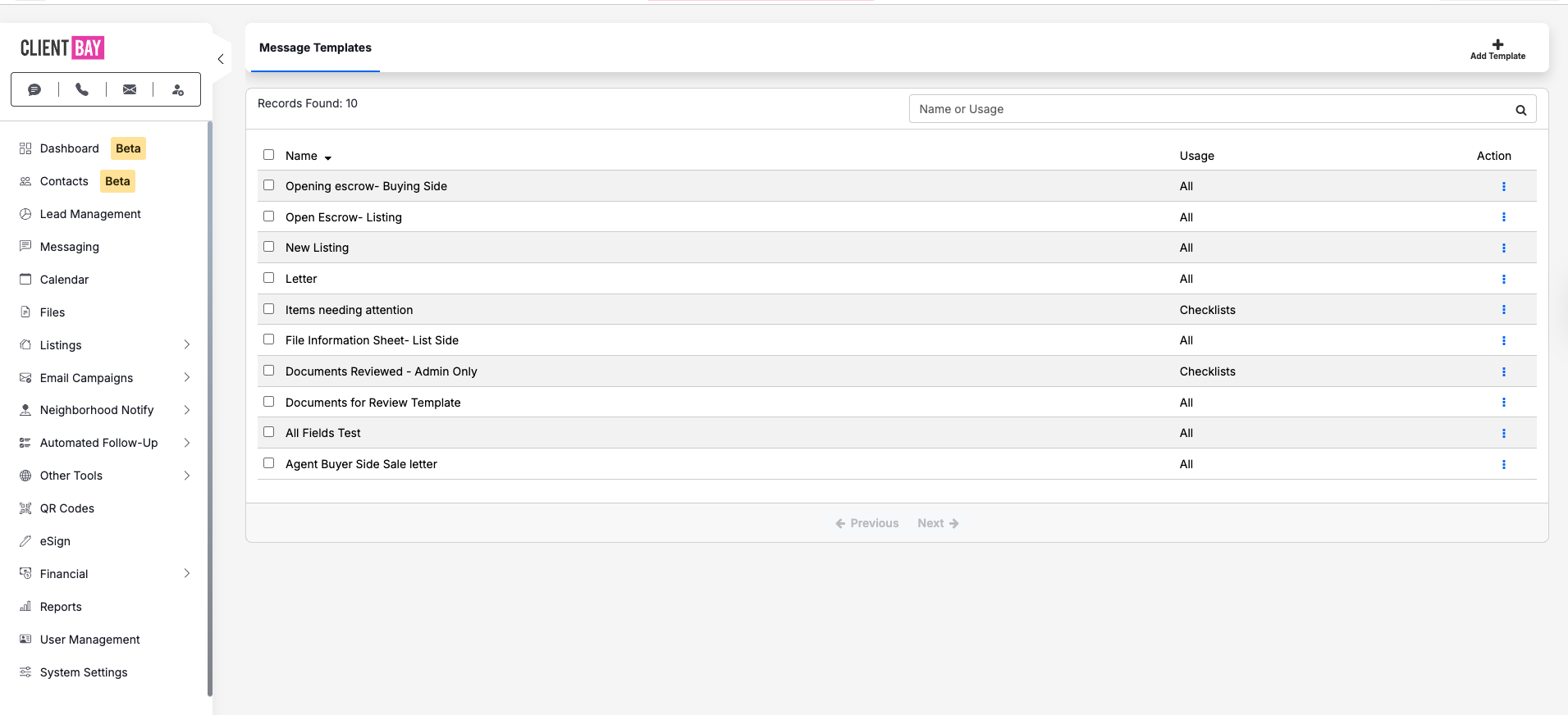 Message Templates are a tool that allows you to save time when sending multiple emails regarding daily transactions. To create a message template, go to the Settings gear icon in the upper right corner of your screen. Then, from the Financial section, select Message Templates. This will open your Message Template Dashboard. Here, you can create a template for an email that you frequently send, so you don’t have to constantly type or copy and paste it. With just a couple of clicks of your mouse, you can have those messages autofill for you and send out your templated message, saving you that time. To build a Message Template, select the +Add Template button. Name your Template and designate the Usage. Below that, you can create the email and also utilize the Add to Text drop-down menu to have fields automatically fill in for you.