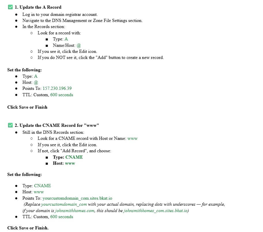 Domain Mapping is when you configure your DNS (Domain Name System) settings so that your own custom domain (like www.JohnSellsHomes.com) replaces the default or company-provided domain (like www.JohnSmith.CompanyURL.com) entirely.