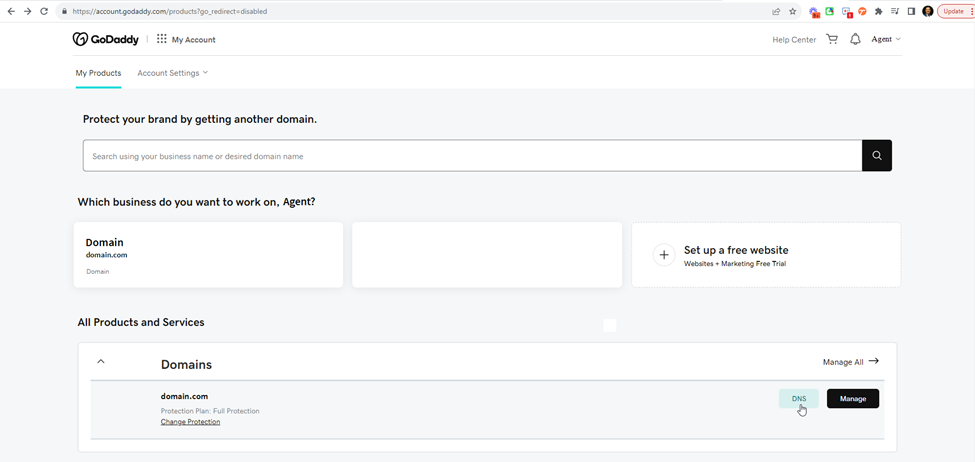 STEP 2 After logging in find your domain and click on the "DNS" button