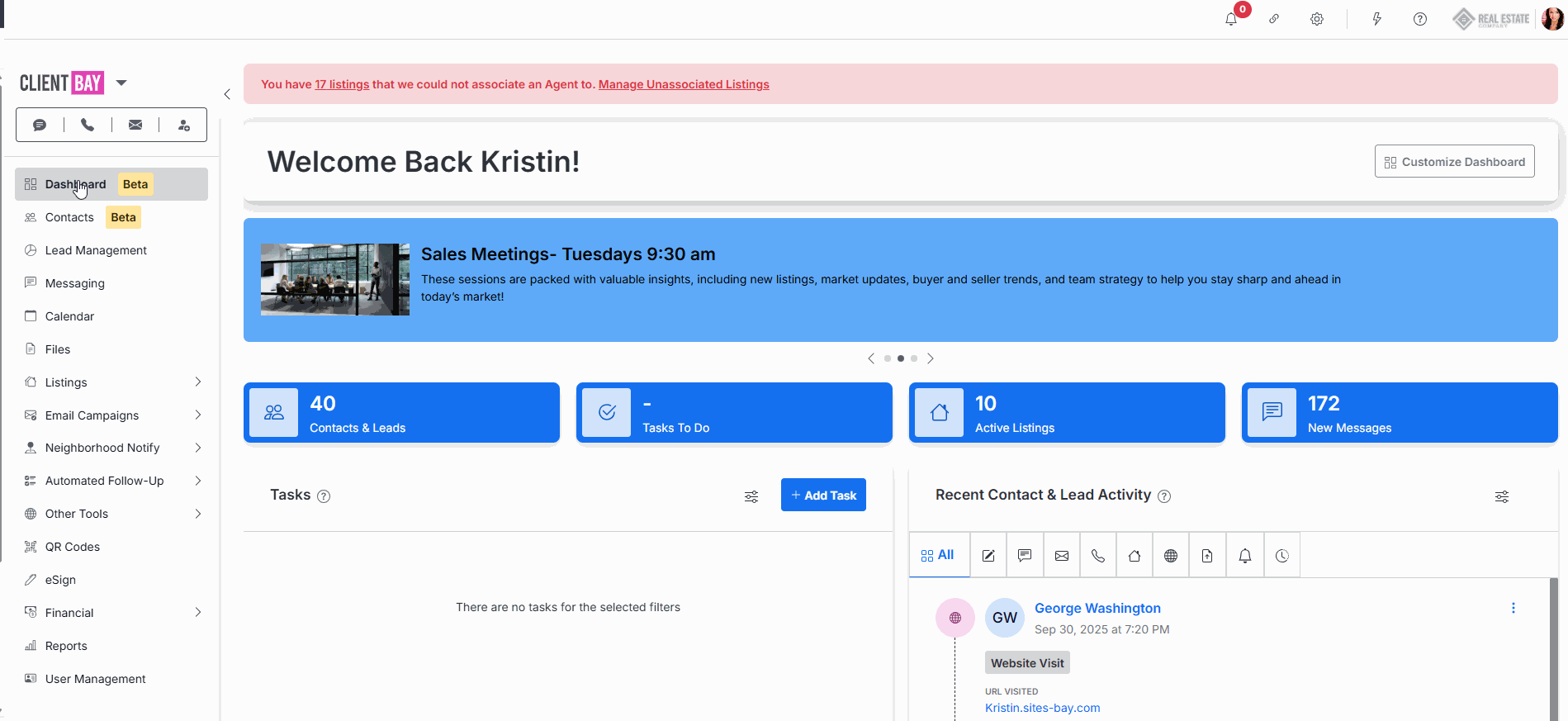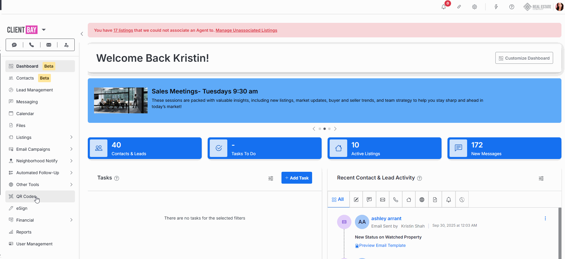 Lead Status Codes are preset by the Admin. To add a Status Code Select the Settings icon in the upper right hand corner of ClientBAY. Select Contact & Lead Status Codes under the Contacts & Leads Section. This will bring up your Status Code Dashboard ...